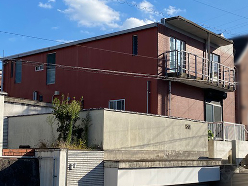 1階が車庫になっている補強コンクリートブロック造りの