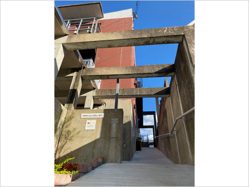 すこしレトロな建物です。入り口にはスロープがございます。